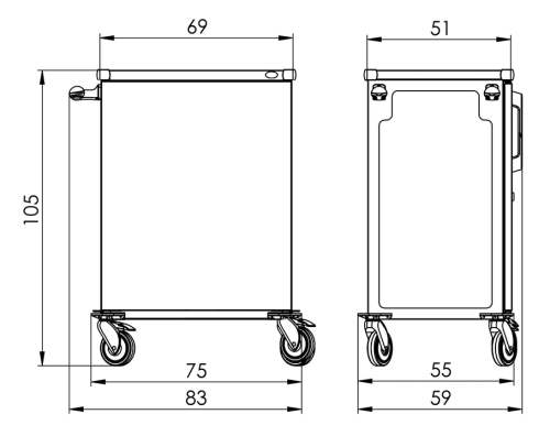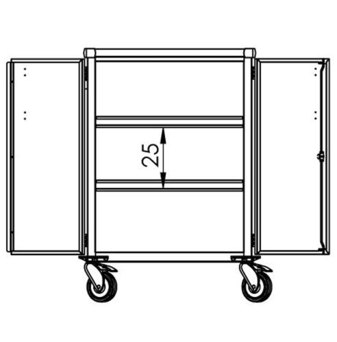 Metallwagen mit Regalen aus Edelstahl AISI304. Der Rahmen verfügt über eine resonanzmindernde Verstrebung. Die obere Arbeitsfläche des Wagens hat eine 12 mm tiefe Vertiefung und ist mit Schutzecken ausgestattet, die Tragfähigkeit beträgt 20 kg. Die Tür ist abschließbar und staubdicht. Anzahl Fachböden: 3 x Festboden - höhenverstellbar, Tragkraft 30kg. Der Wagen verfügt außerdem über einen Schiebegriff aus Edelstahl. Die Räder haben einen Durchmesser von 125 mm und sind mit Kunststoffstoppern ausgestattet, 2 Räder sind bremsbar. Das Produkt hat eine Tragkraft von 150 kg.