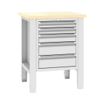 Metallwerkstatttisch, 725 mm breit. Die Höhe ist von 850 bis 900 mm einstellbar. Die Tragfähigkeit des Tisches beträgt 300 kg. Die Tischplatte ist eine gehärtete Sperrholzplatte, andere Tischplatten können gegen Aufpreis bestellt werden. Die Werkbank wird montiert auf einer Platte geliefert.
