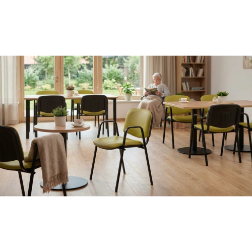 Der Seniorenstuhl ISO 55 ist speziell für Nutzer konzipiert, die eine höhere Sitzposition und eine feste Stütze beim Hinsetzen und Aufstehen benötigen. Durch die erhöhte Sitzfläche wird der Übergang zwischen Sitzen und Stehen natürlicher und deutlich weniger anstrengend, was besonders Senioren oder Personen in der Rehabilitationsphase zugutekommt.